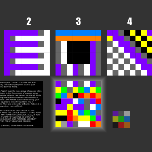 Try to duplicate the patterns that are labeled 1 thru 5. Instructions are in the scene (I hope they make sense!).