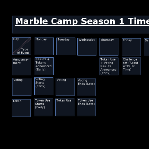 Title: Marble Camp Season 1 Timetable