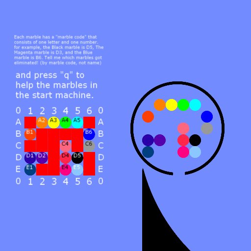 Tell me the eliminated Marbles. (by it's marble code) |