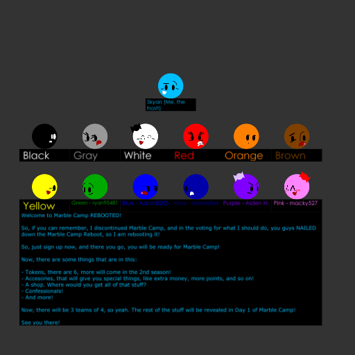 Title: Marble Camp REBOOTED Sign Ups! (7/12 spots left!)