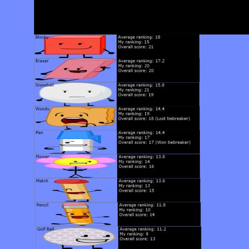 Title: Order of BFDI fan- favorites