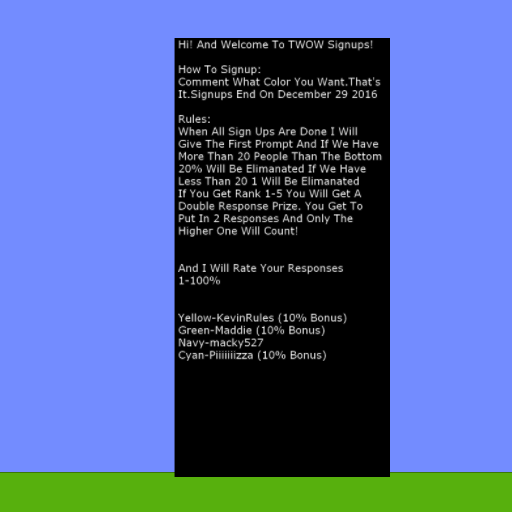 Title: TWOW signups 1/???