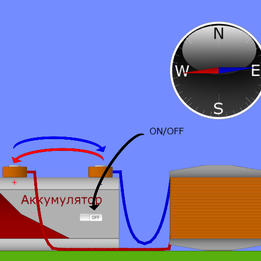 Експеремент с компасом и електро магнитом полярность можно менять меняя местами клемы. |