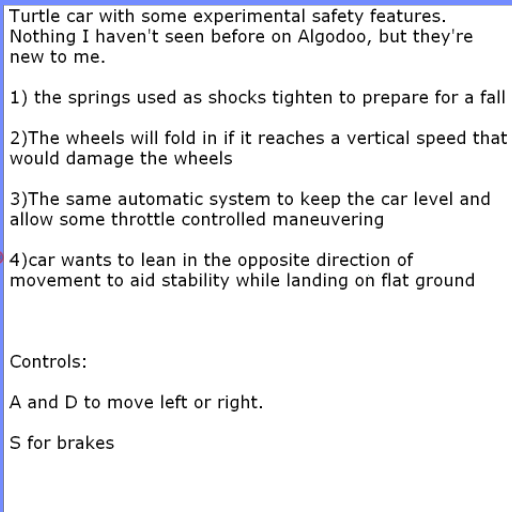 Title: Experimental: Simple Car with scripted safety features.
