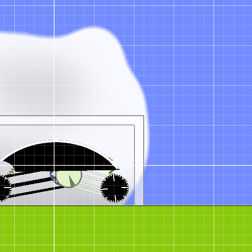 Conceptually, that's a cool car too, but plagued by may of Nxdt's car's problems as well. Its suspension frequently breaks and does things that good suspension shouldn't. Strangely, the soft wheels are very heavy and hard. Heavy wheels place your center of gravity low, but also make your suspension less useful. Suspension is generally the best when the great majority of the car's mass is on top of it. It broke so often and had so many obstacles that it couldn't deal with that I'm not sure if you wanted me to place it on the leader board.